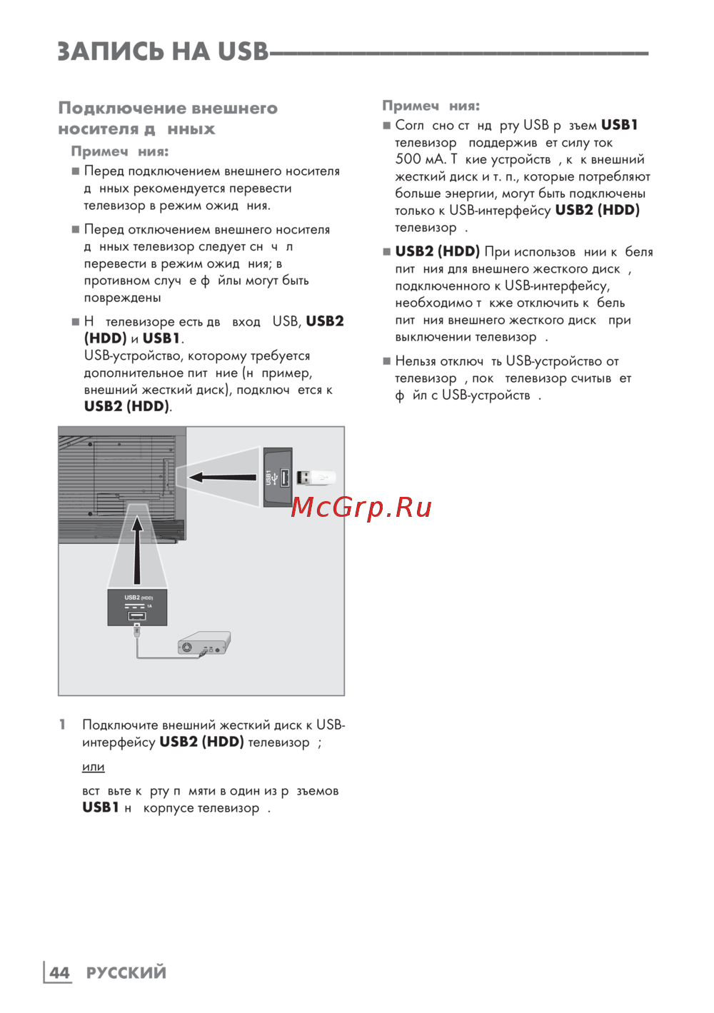интерфейсу USB2 (HDD) телевизора;