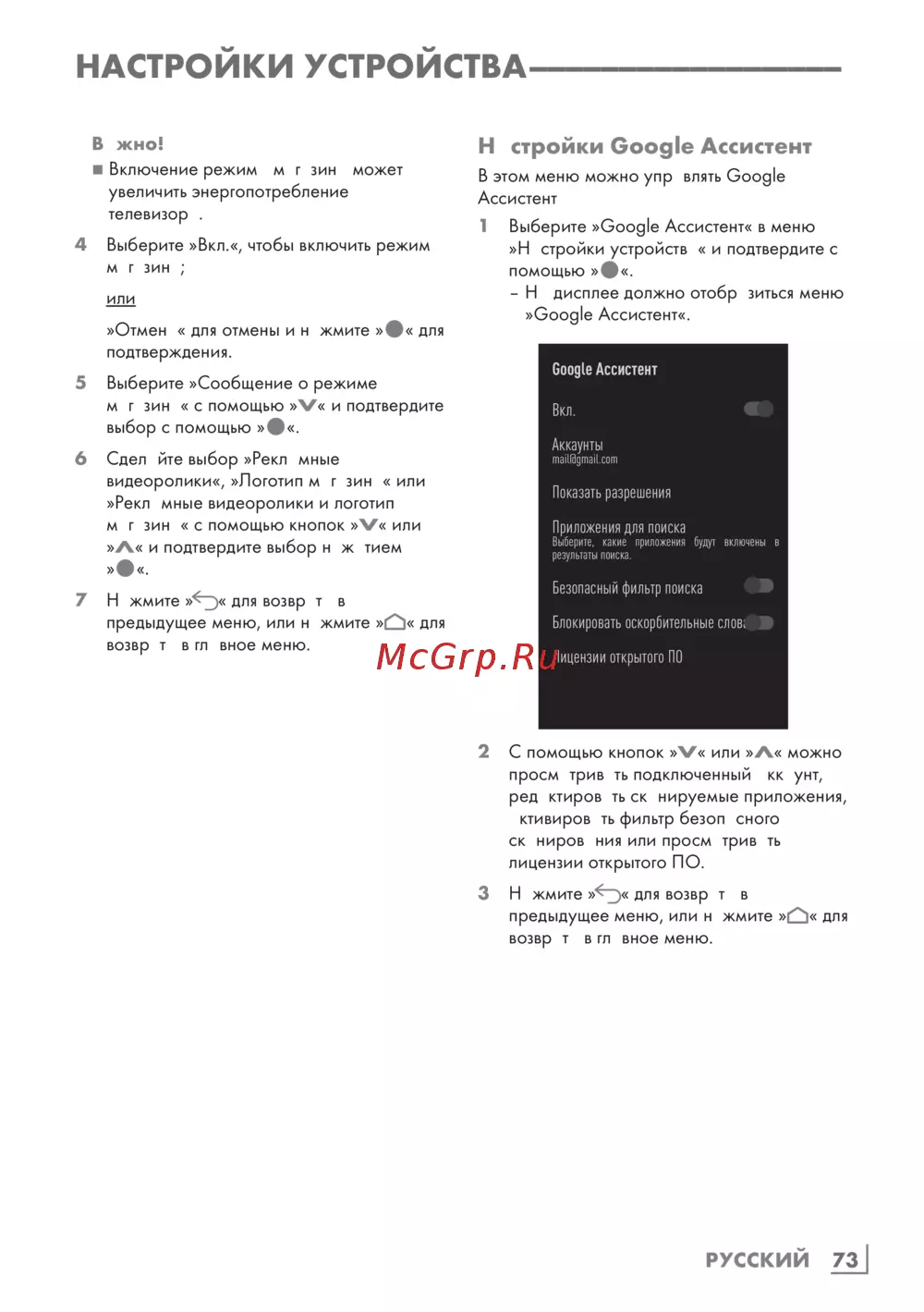 Grundig 65GOB9290 — настройки устройства: включение режима магазина и Google Ассистента [73/124]