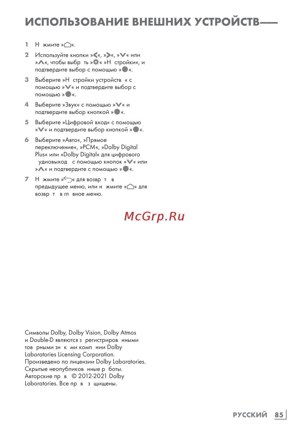 Авторские права © 2012-2021 Dolby