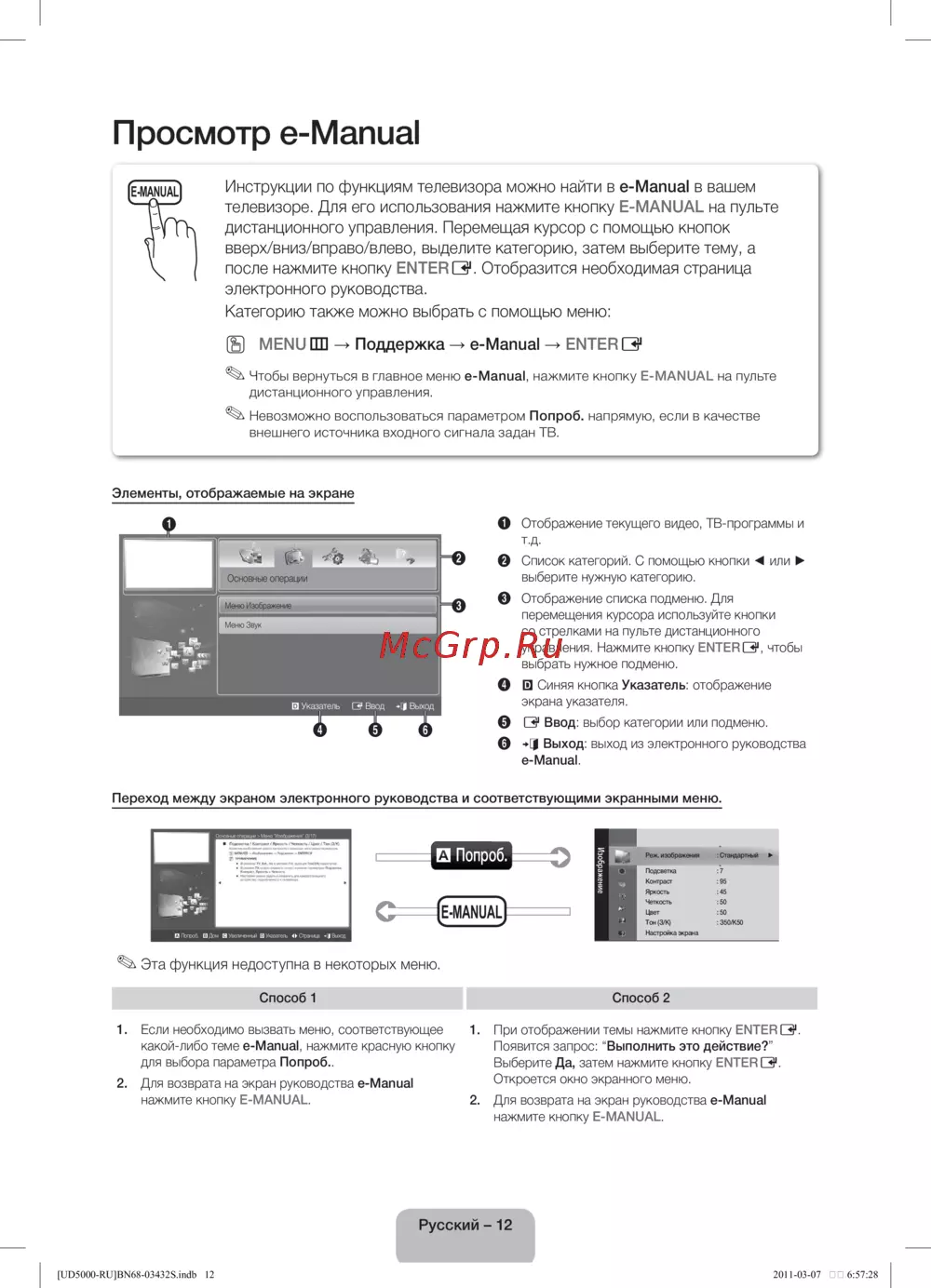 телевизоре. Для его использования нажмите кнопку E-MANUAL на пульте