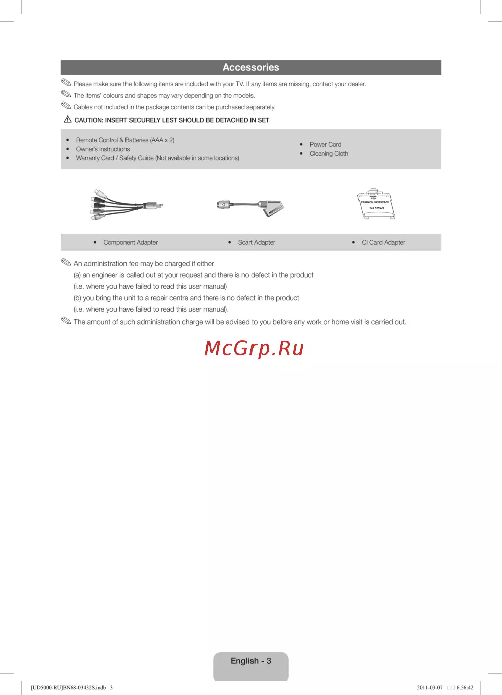 Samsung UE27D5010NW [3/65] The amount of such administration charge will be advised to you before any work or home visit is carried out