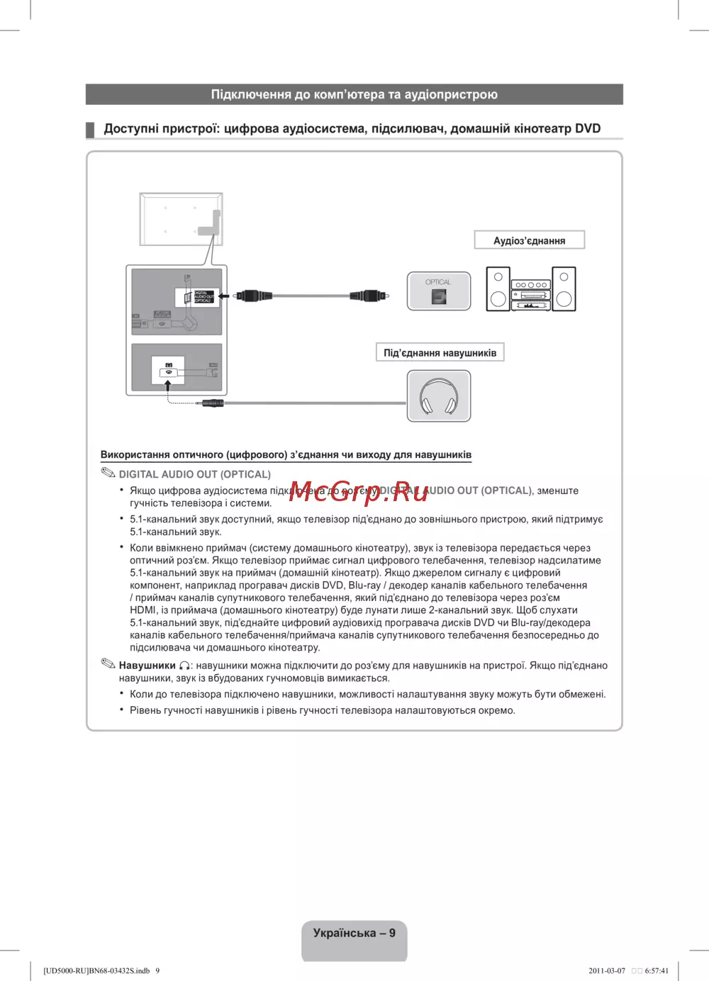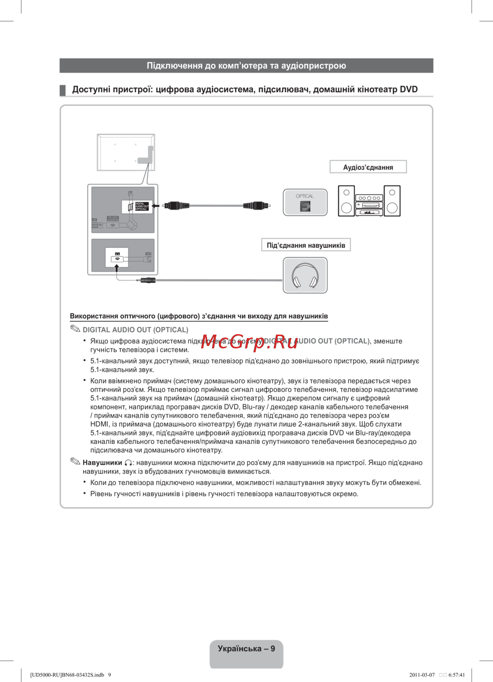 5.1-канальнийxзвук,xпід’єднайтеxцифровийxаудіовихідxпрогравачаxдисківxDVDxчиxBlu-ray/декодераx