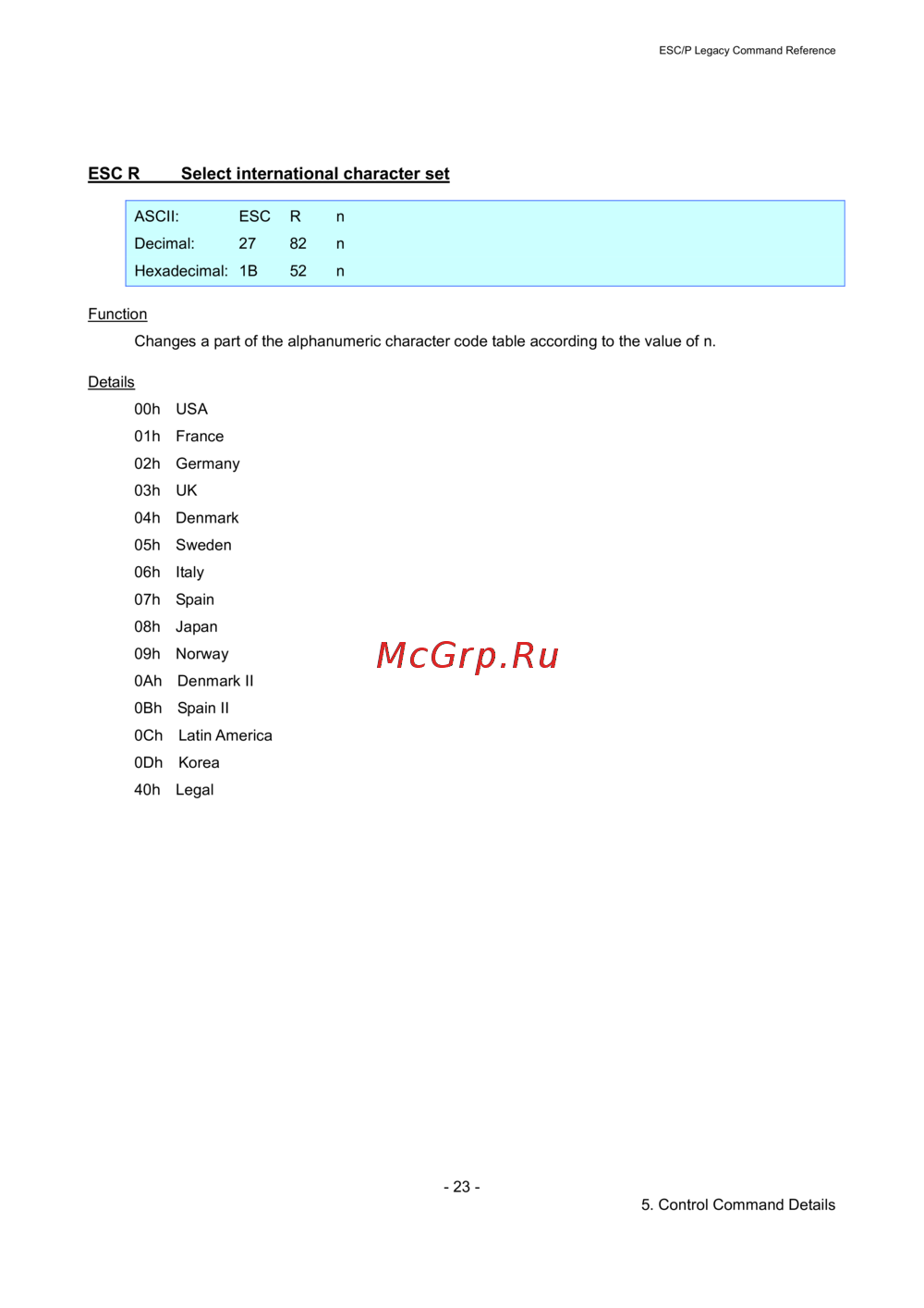 - Esc p legacy command referencepj 722 723 762 763 763mfi 773 p.1