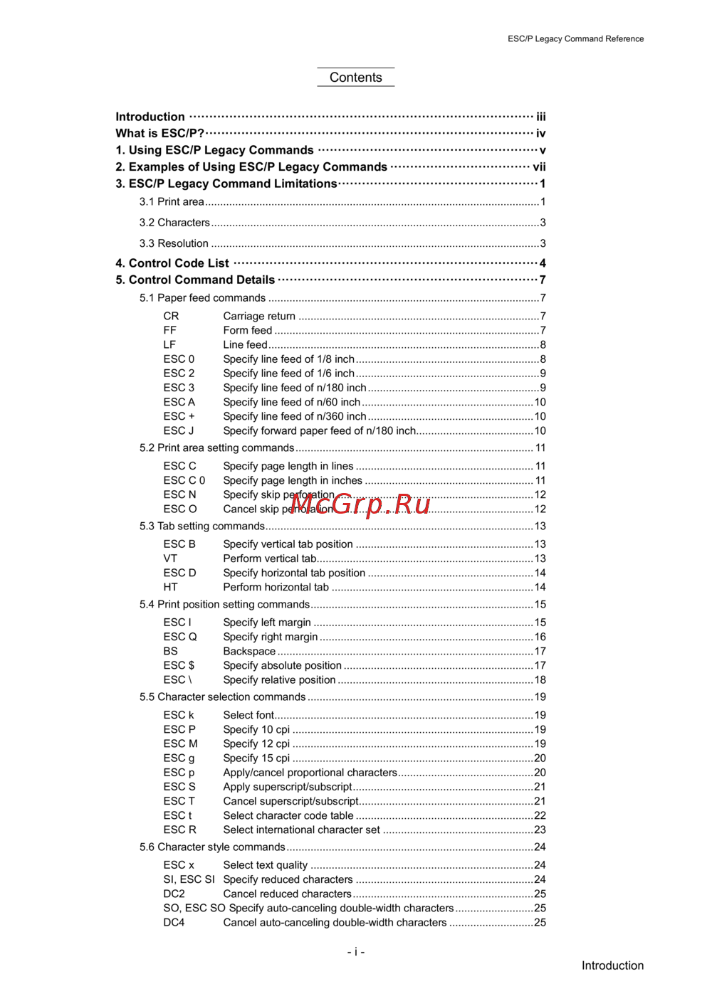5.1 Paper feed commands .......................................................................................... 7