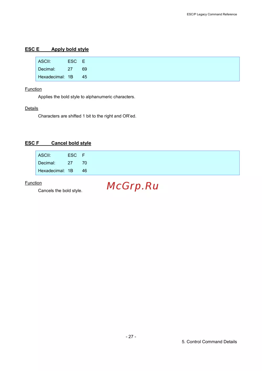 - Esc p legacy command reference p.1
