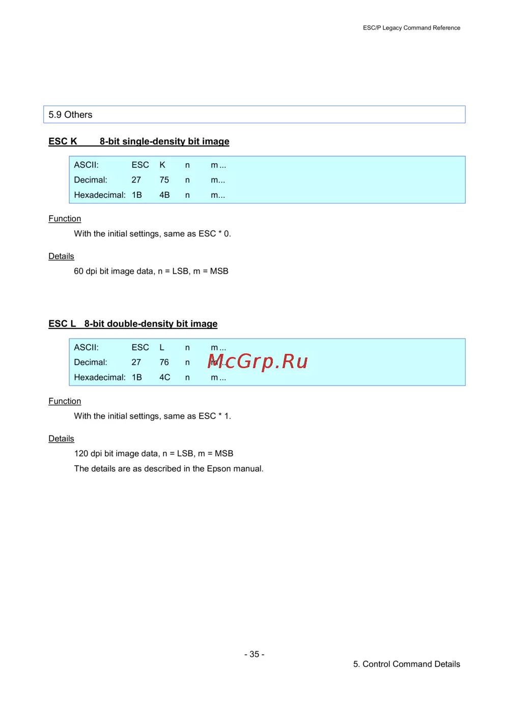 - Esc p legacy command reference p.1
