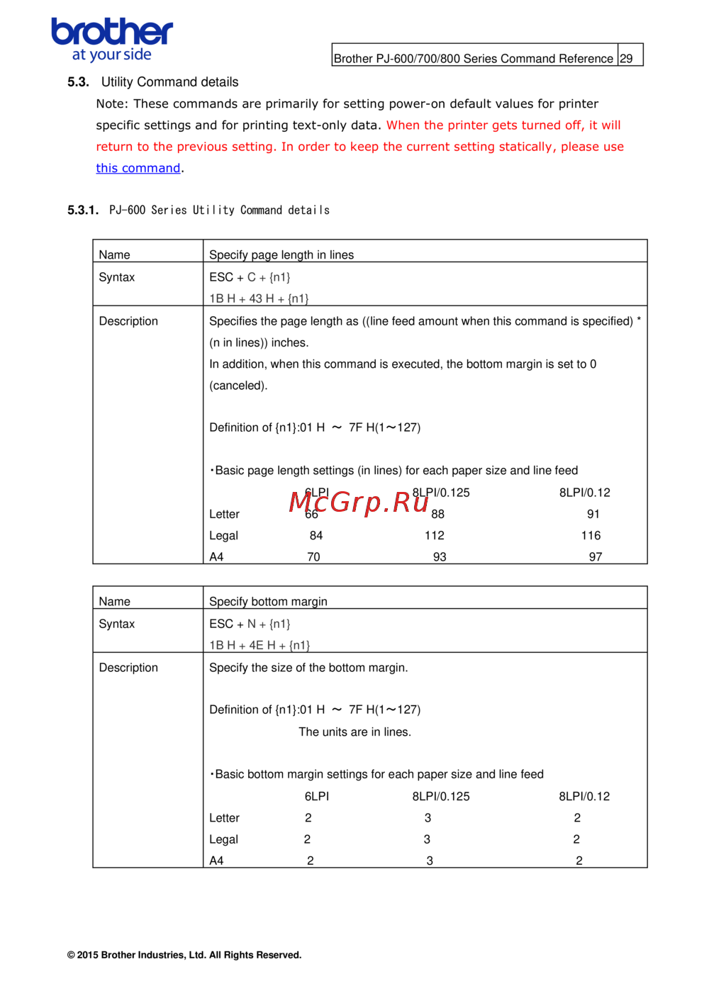 Brother PJ-723Справочник по языку команд Brother ESC -