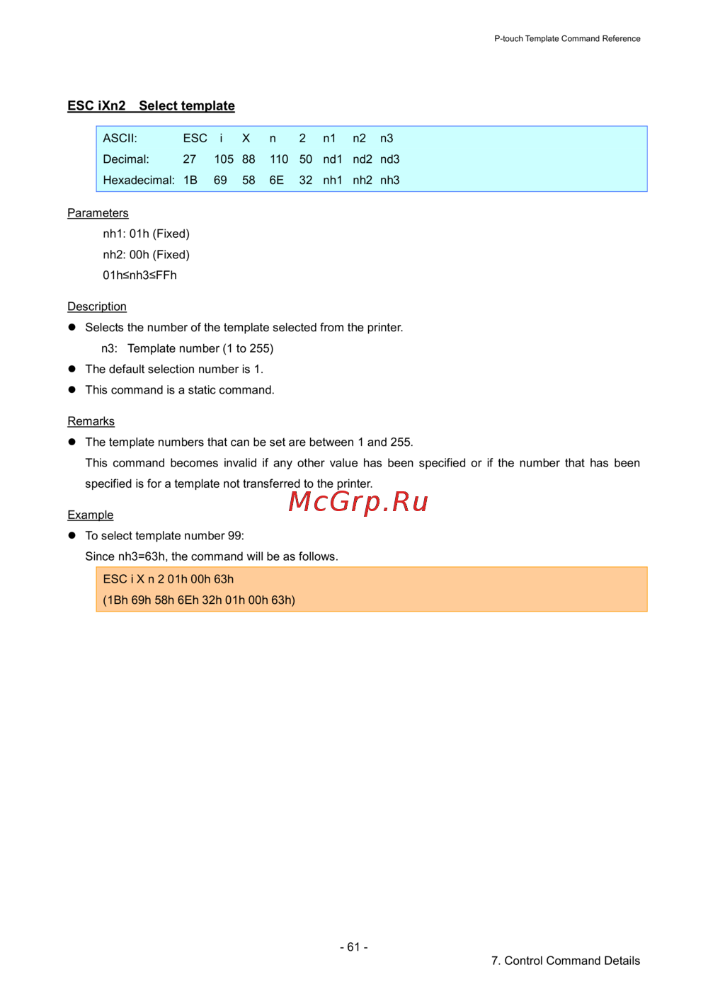 Brother PJ-723Справочник по устаревшему языку команд ESC -