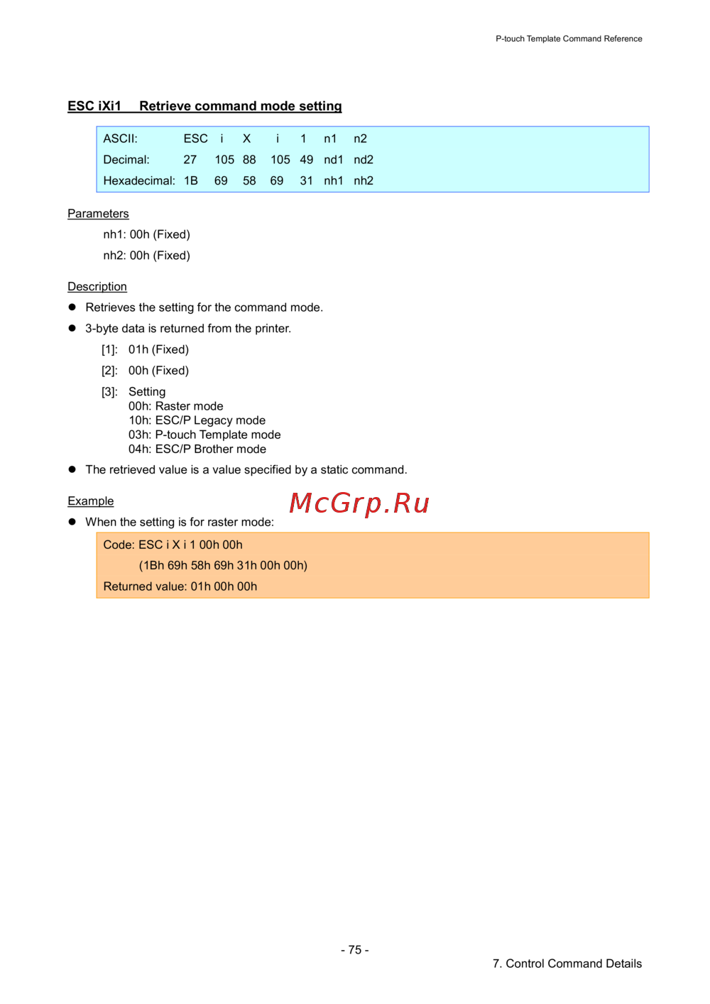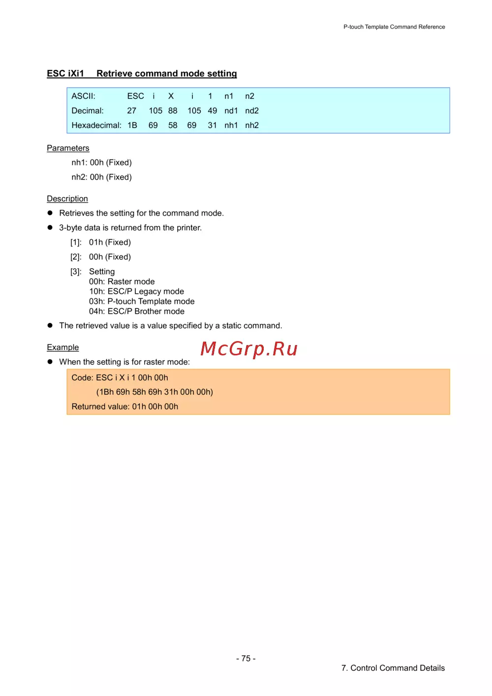 Brother PJ-723 [80/98] Esc ixi1 retrieve command mode setting