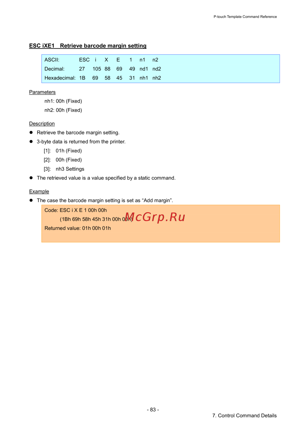 Brother PJ-723 [88/98] Esc ixe1 retrieve barcode margin setting