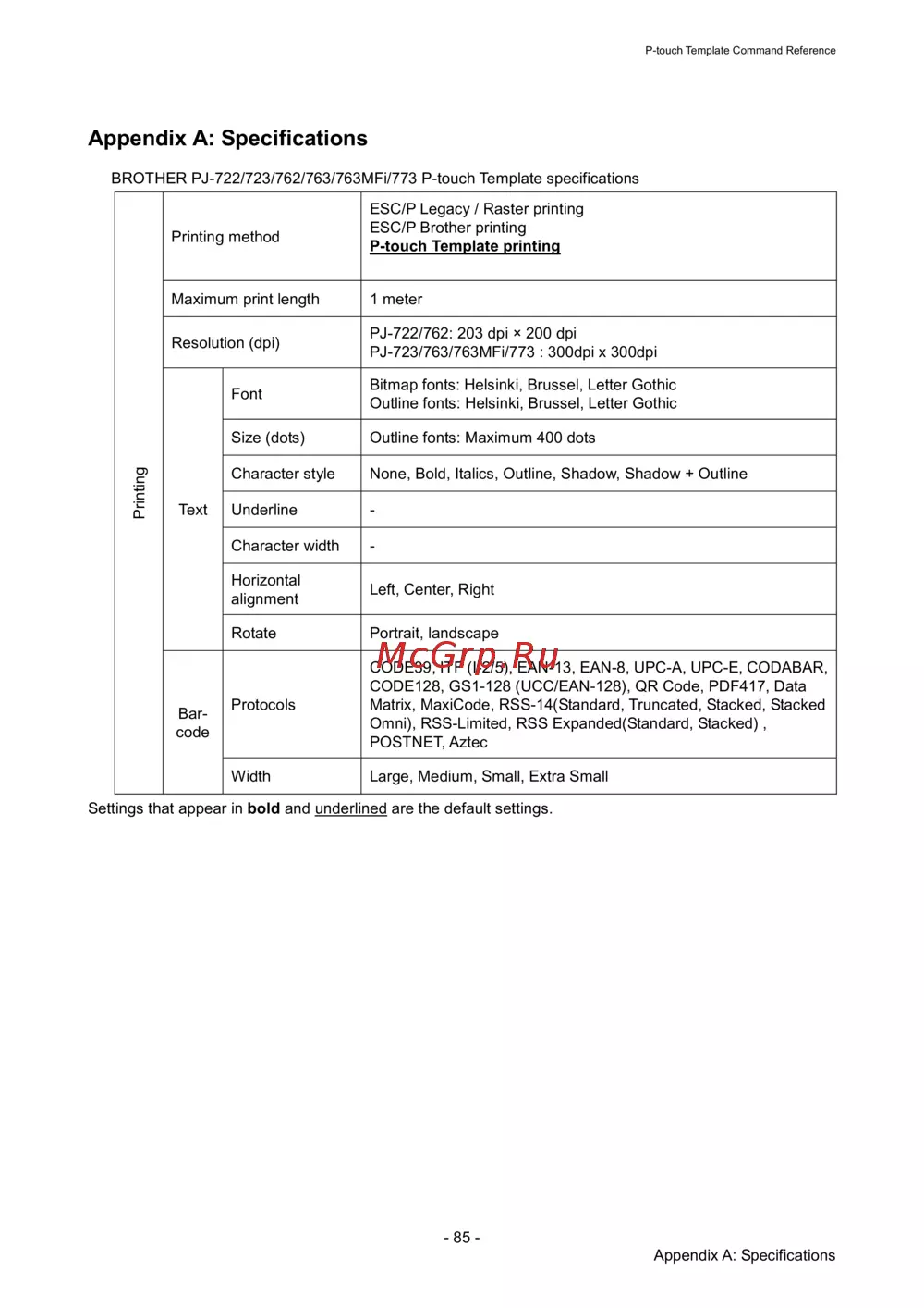 ![Brother PJ-723 [90/98] Appendix a specifications](/views2/1897105/page90/bg5a.png)