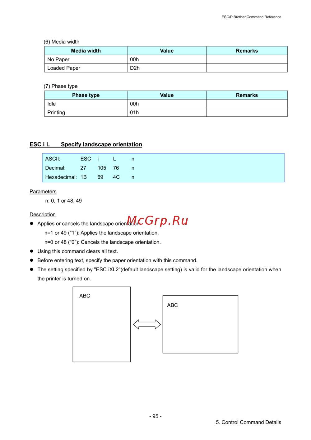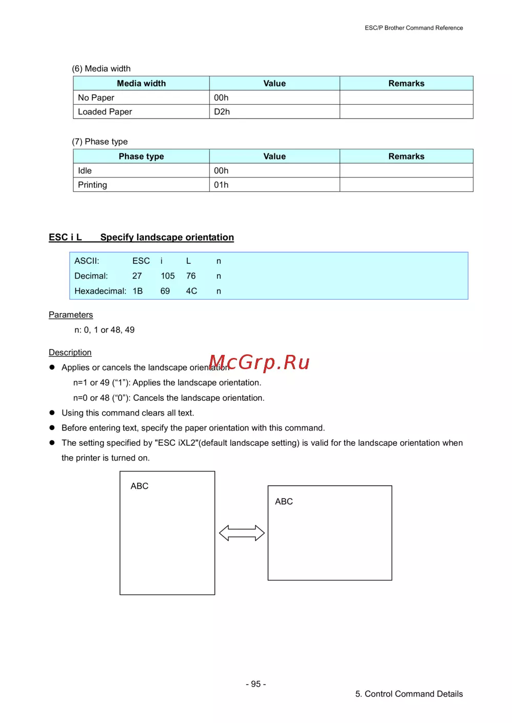n=0 or 48 (“0”): Cancels the landscape orientation.