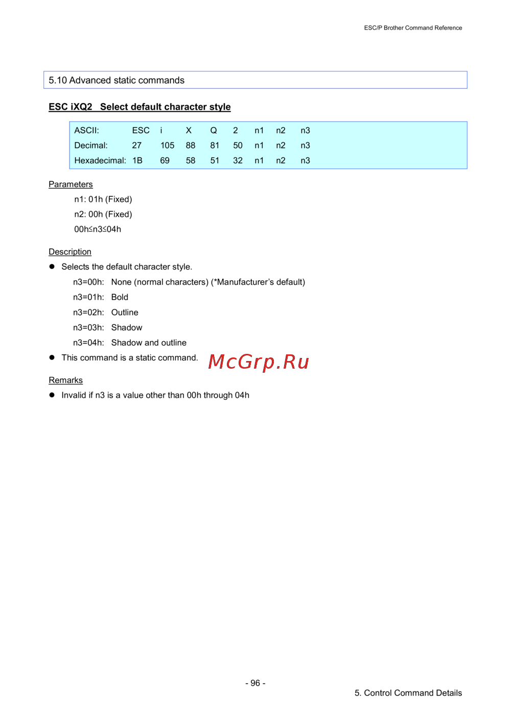 - Esc p brother command reference p.1