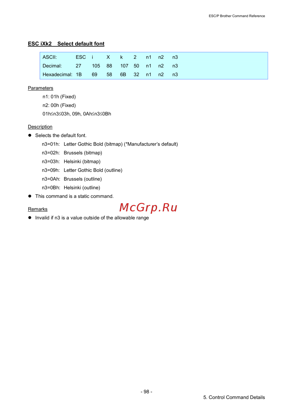 - Esc p brother command reference p.1