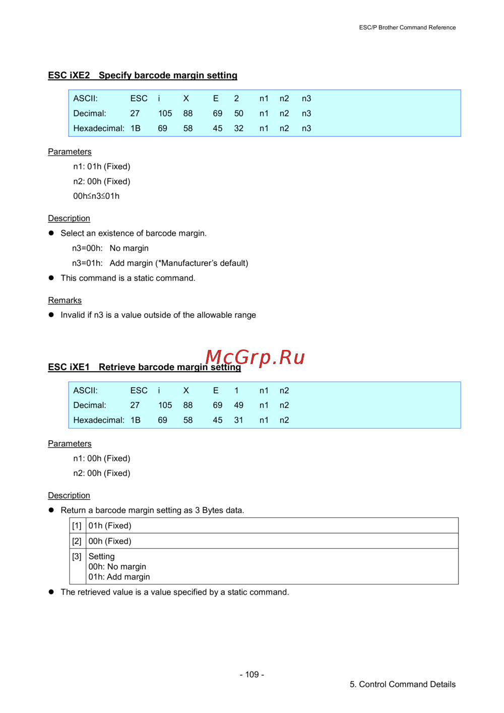 ![Brother PJ-723 [115/122] Esc ixe2 specify barcode margin setting](/views2/1897106/page115/bg73.png)
