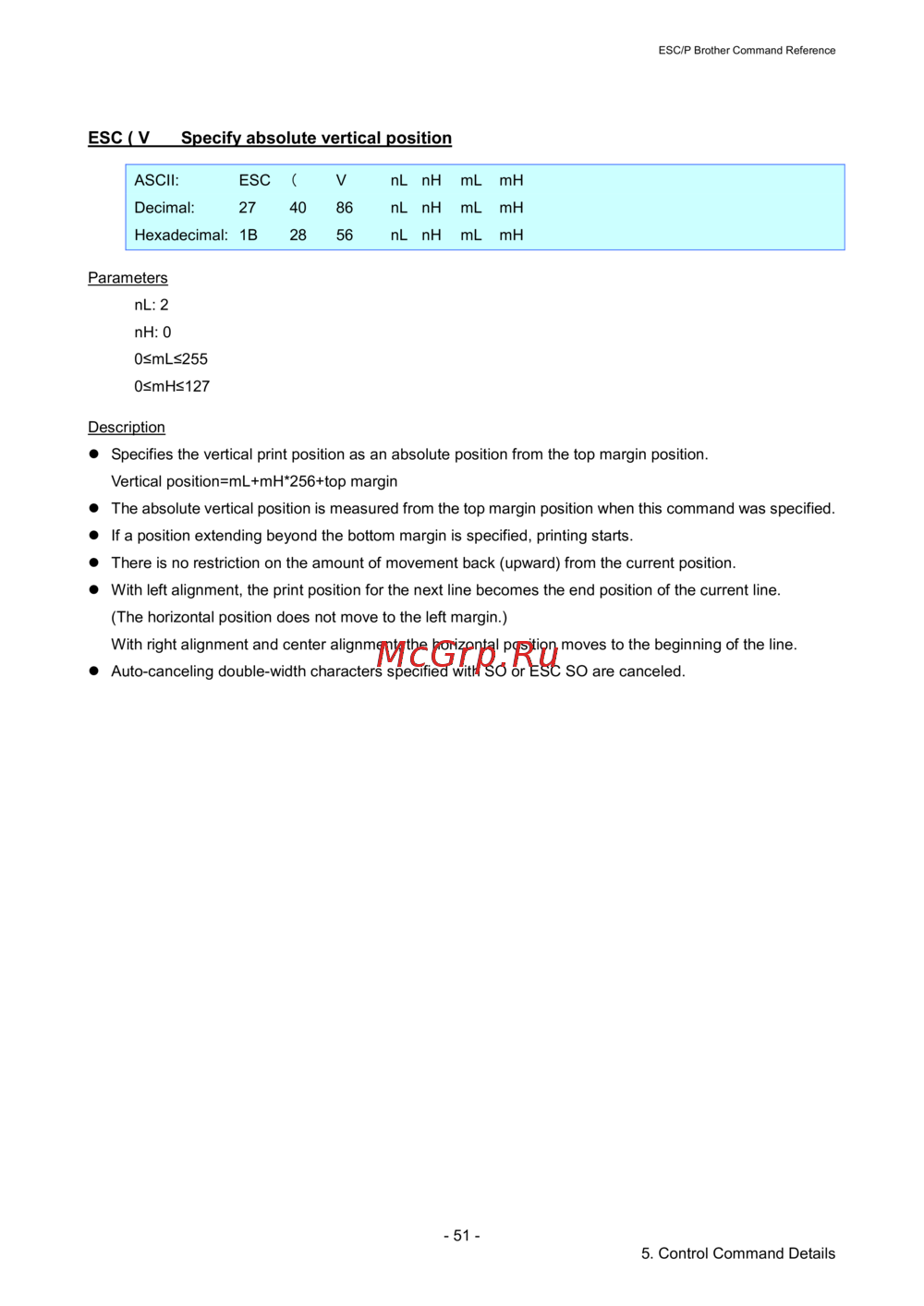 Brother PJ-723 [57/122] Esc v specify absolute vertical position