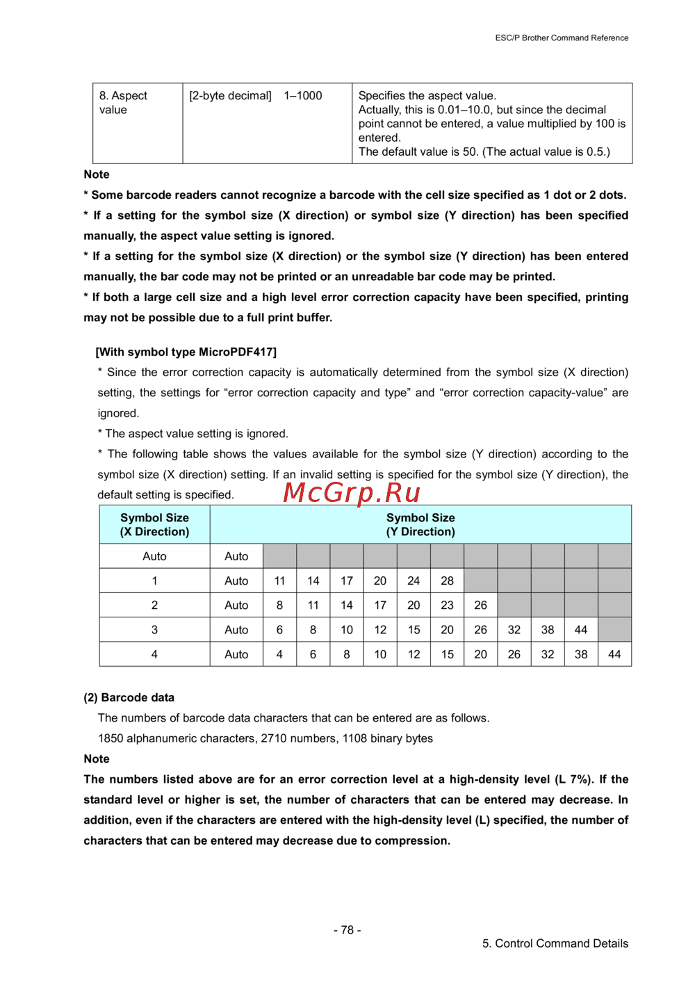 Brother PJ-723 — подробное руководство по командам управления для штрих-кодов [84/122]