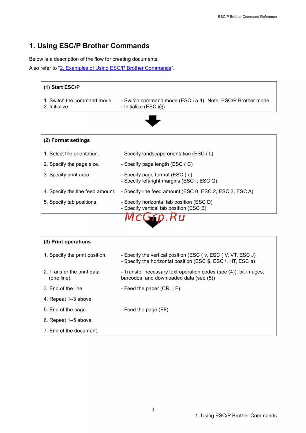 Also refer to “2. Examples of Using ESC/P Brother Commands