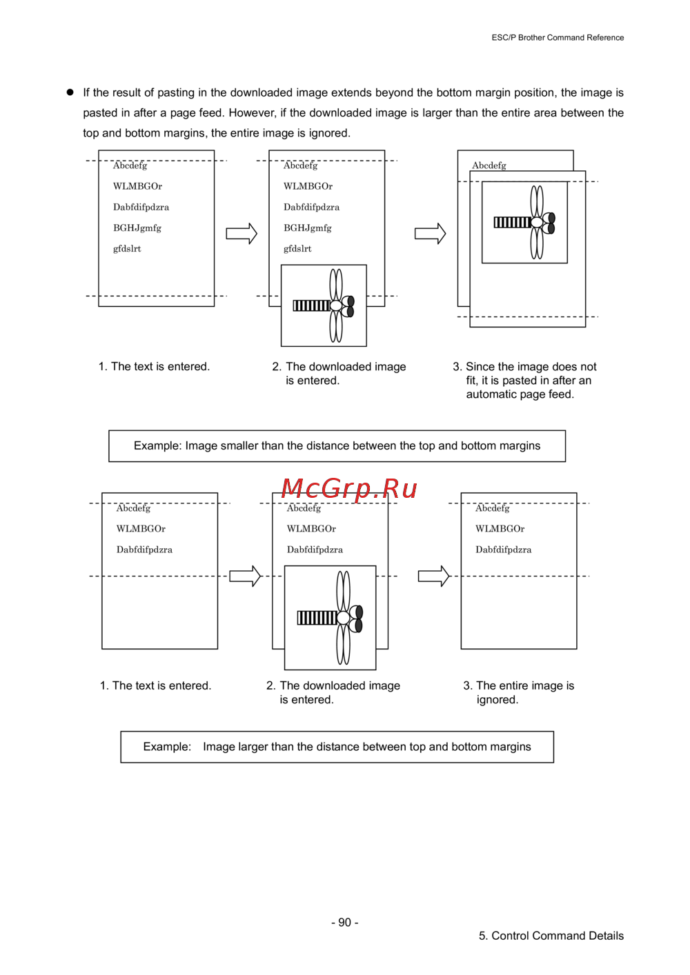 pasted in after a page feed. However, if the downloaded image is larger than the entire area between the