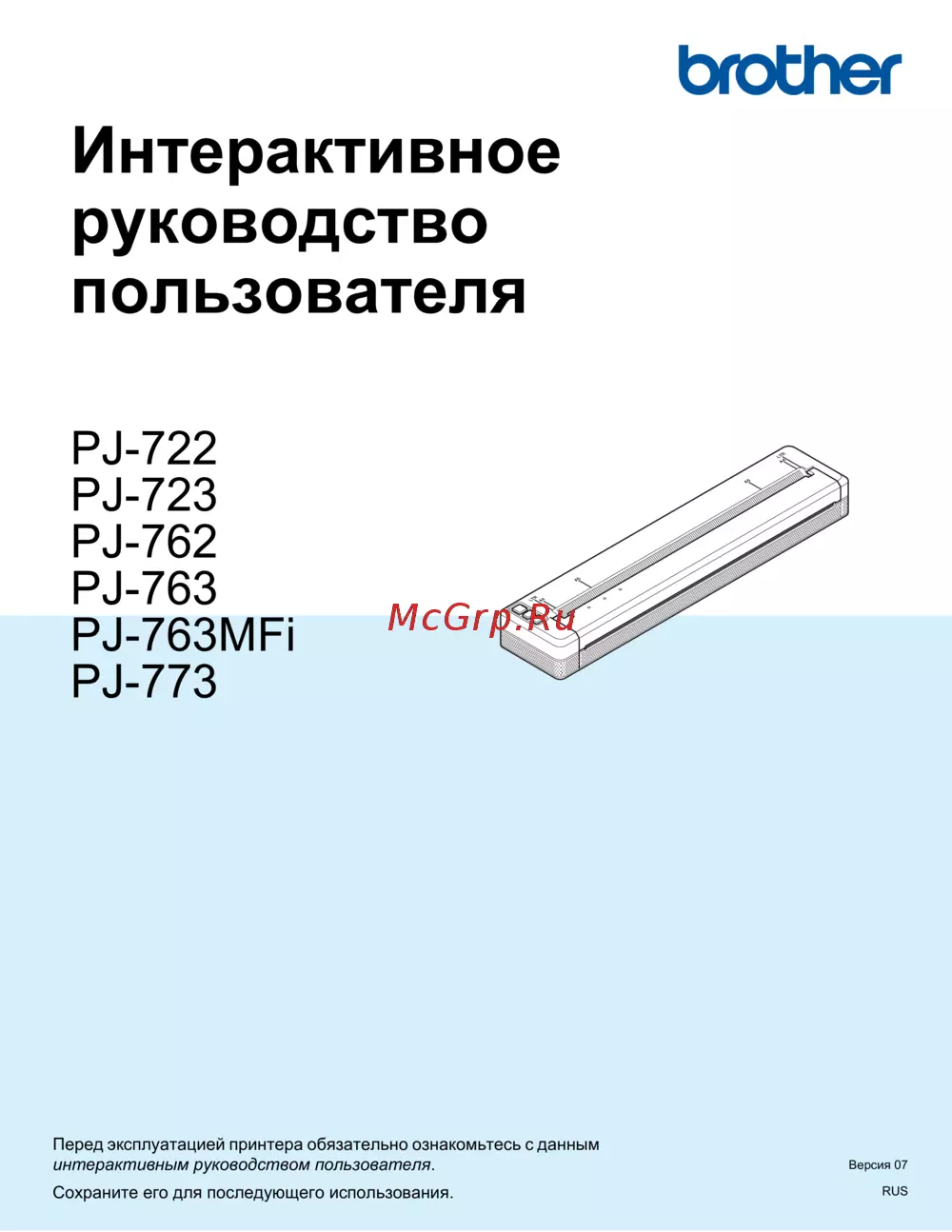 Brother PJ-723 Интерактивное руководство пользователя онлайн