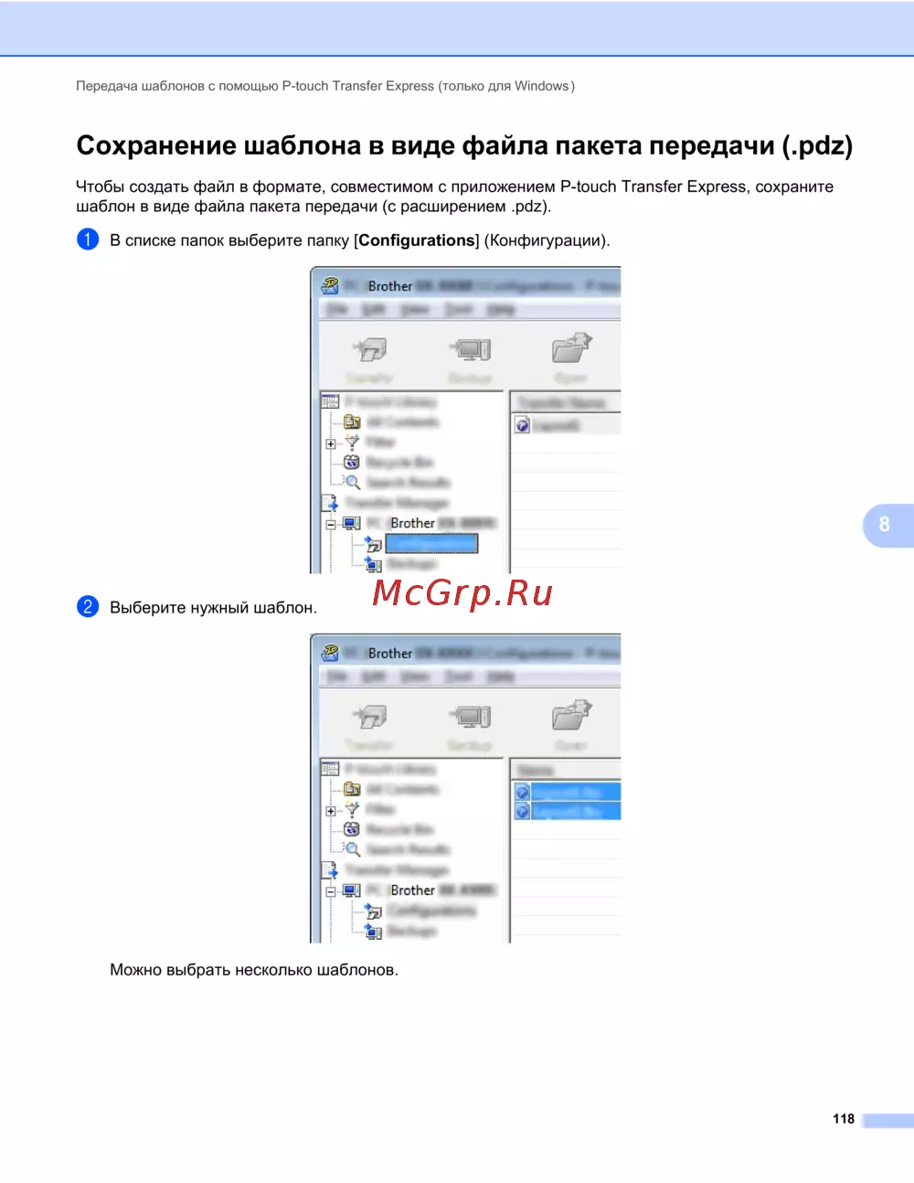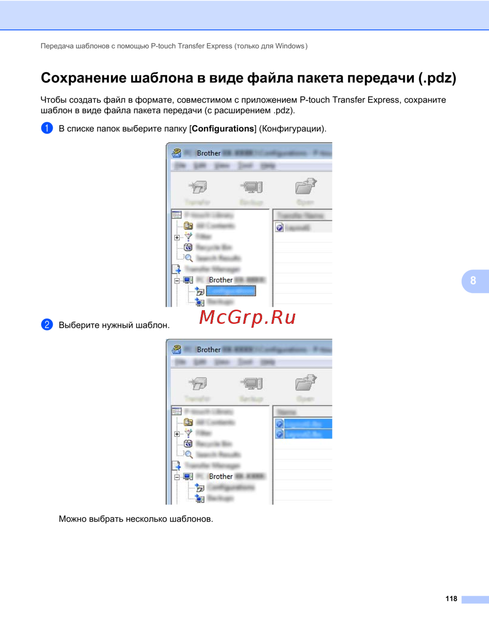 - Передача шаблонов с помощью p touch transfer express только для windows 116 p.7