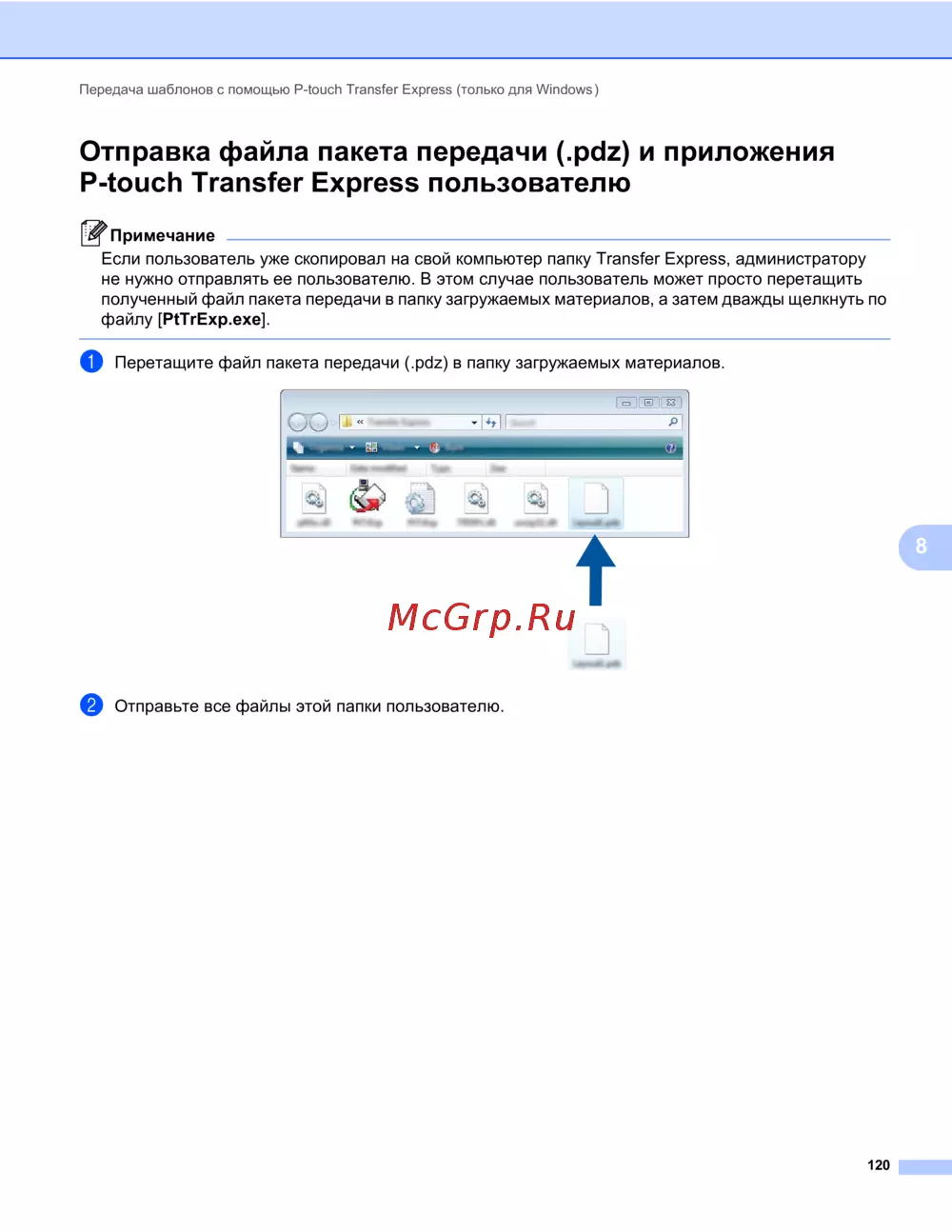 - Отправка файла пакета передачи pdz и приложения p touch transfer express пользователю p.128
