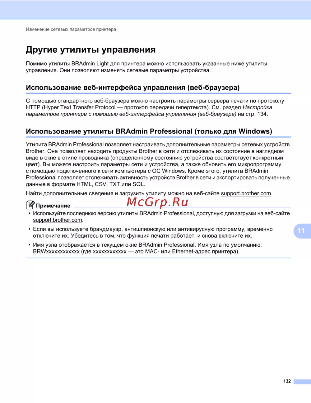 Помимо утилиты BRAdmin Light для принтера можно использовать указанные ниже утилиты