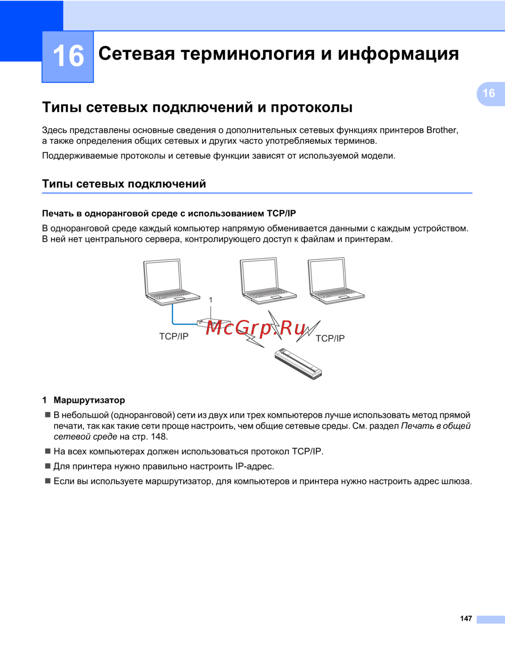 Brother PJ-723 [155/167] Типы сетевых подключений и протоколы