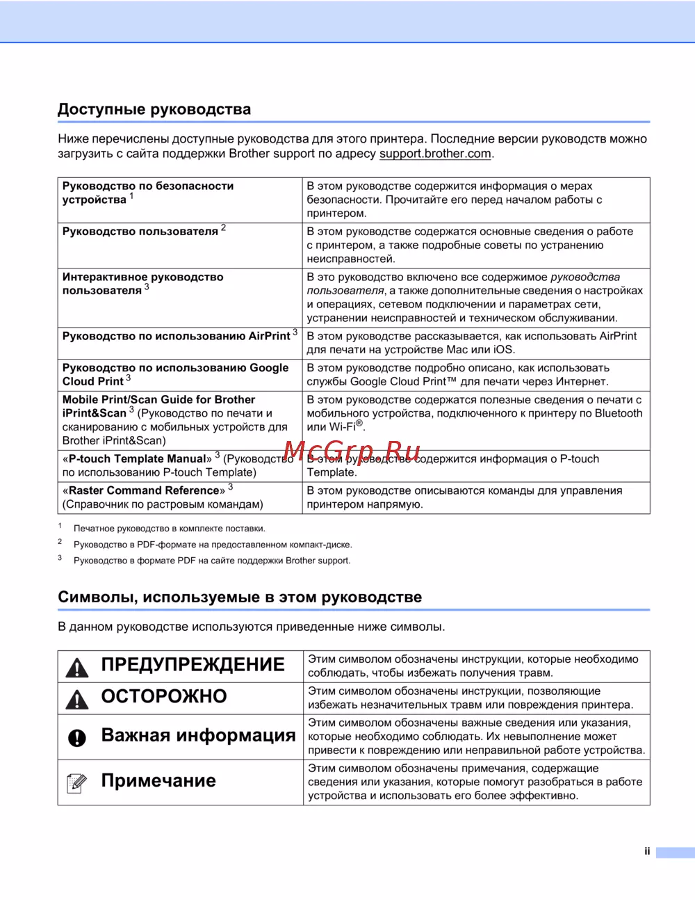 - Ниже перечислены доступные руководства для этого принтера последние версии руководств можно загрузить с сайта поддержки brother support по адресу support brother com p.3