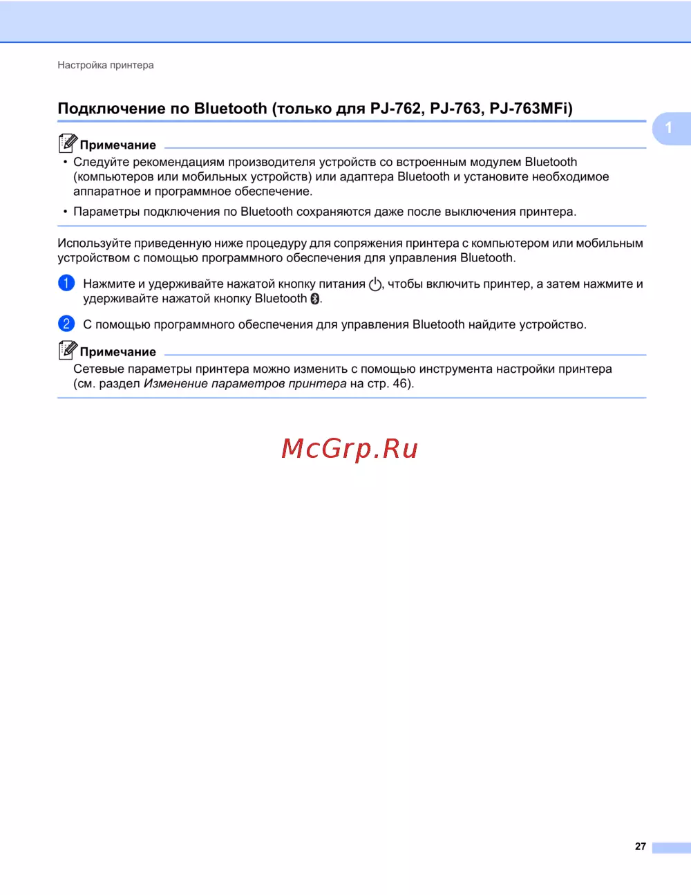 Подключение по Bluetooth (только для PJ-762, PJ-763, PJ-763MFi) 1