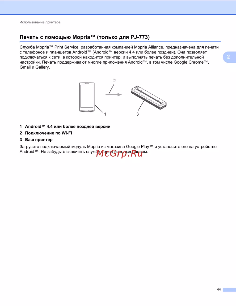 Печать с помощью Mopria™ (только для PJ-773) 2