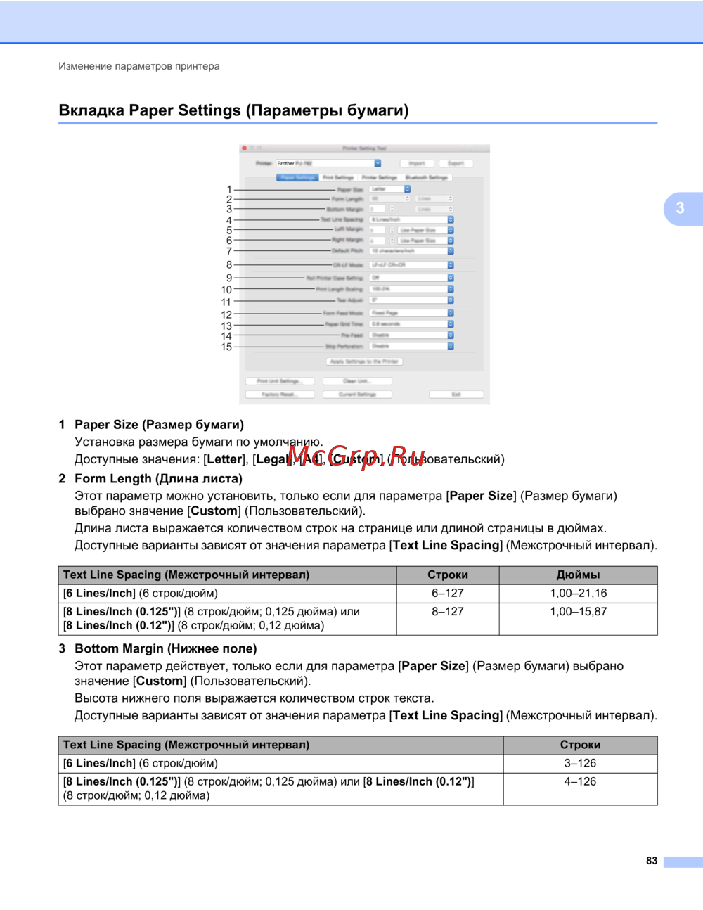 [6 Lines/Inch] (6 строк/дюйм) 3–126
