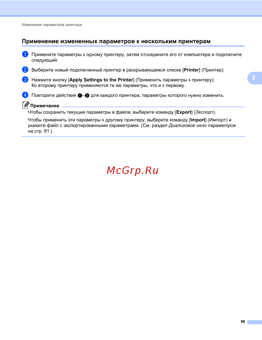 Чтобы применить эти параметры к другому принтеру, выберите команду [Import] (Импорт) и