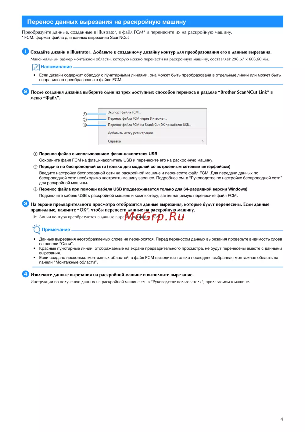 - Преобразуйте данные созданные в illustrator в файл fcm и перенесите их на раскройную машину p.4