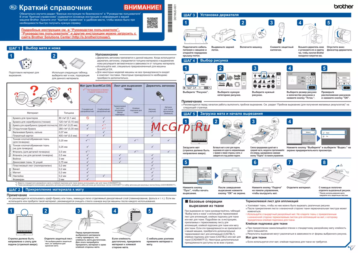 Brother ScanNCut SDX1200 Краткий справочник онлайн
