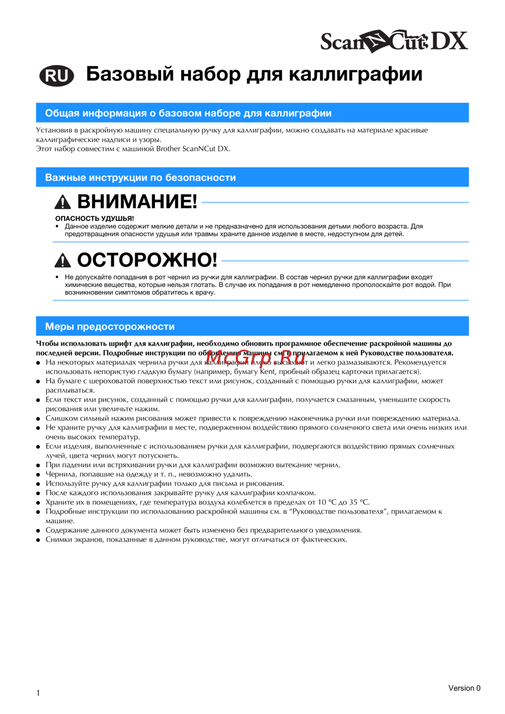 Brother ScanNCut SDX1200 Руководство пользователя базового набора для каллиграфии онлайн