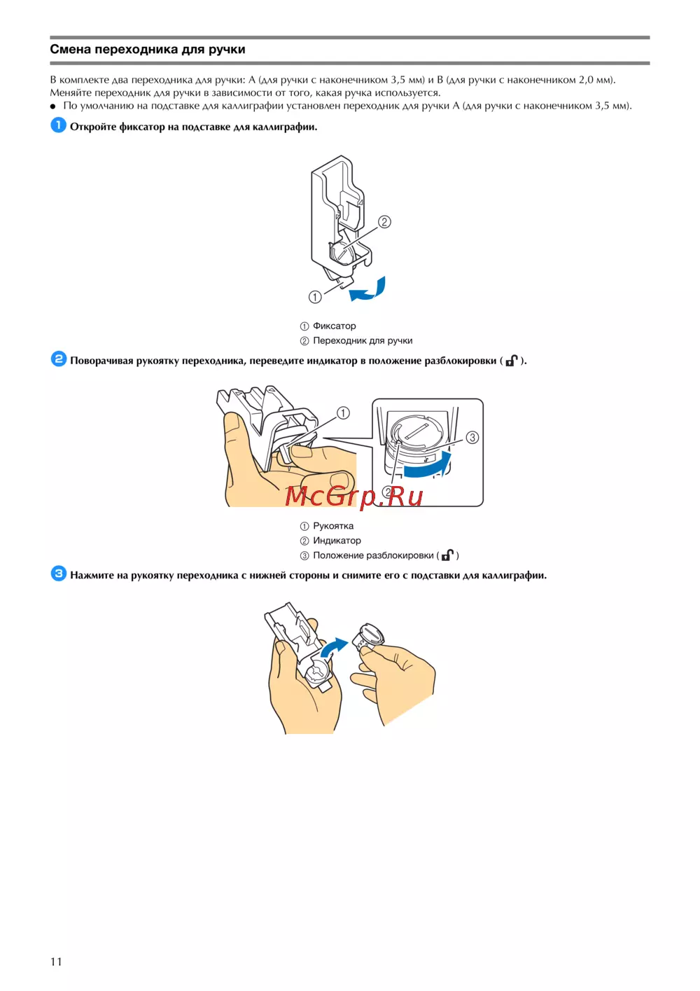 Меняйте переходник для ручки в зависимости от того, какая ручка используется.