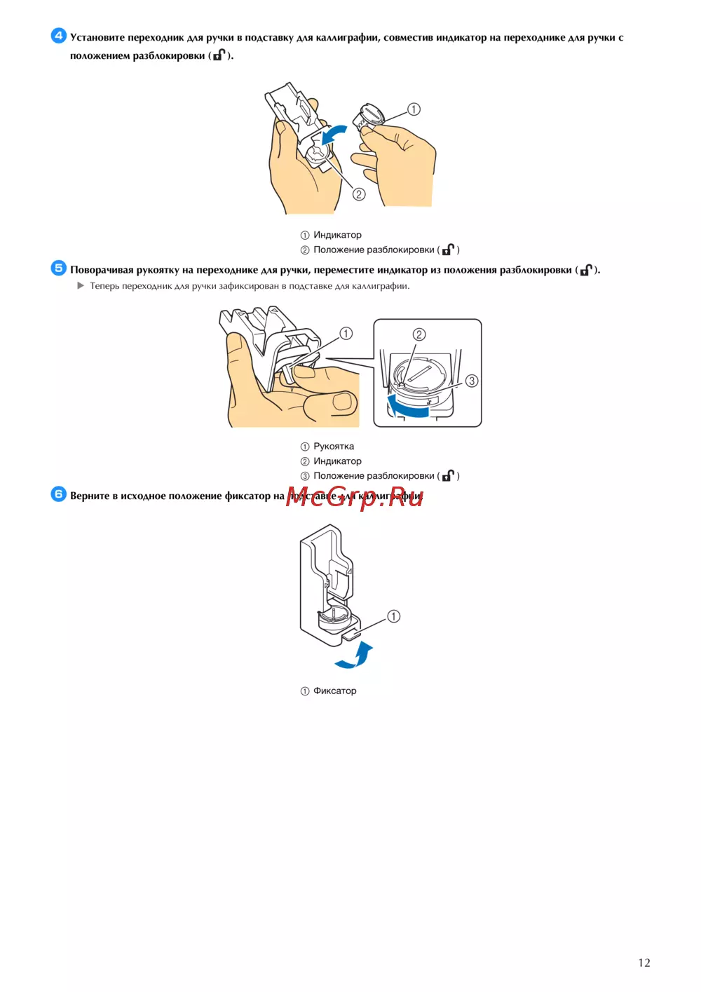 - Верните в исходное положение фиксатор на подставке для каллиграфии p.9