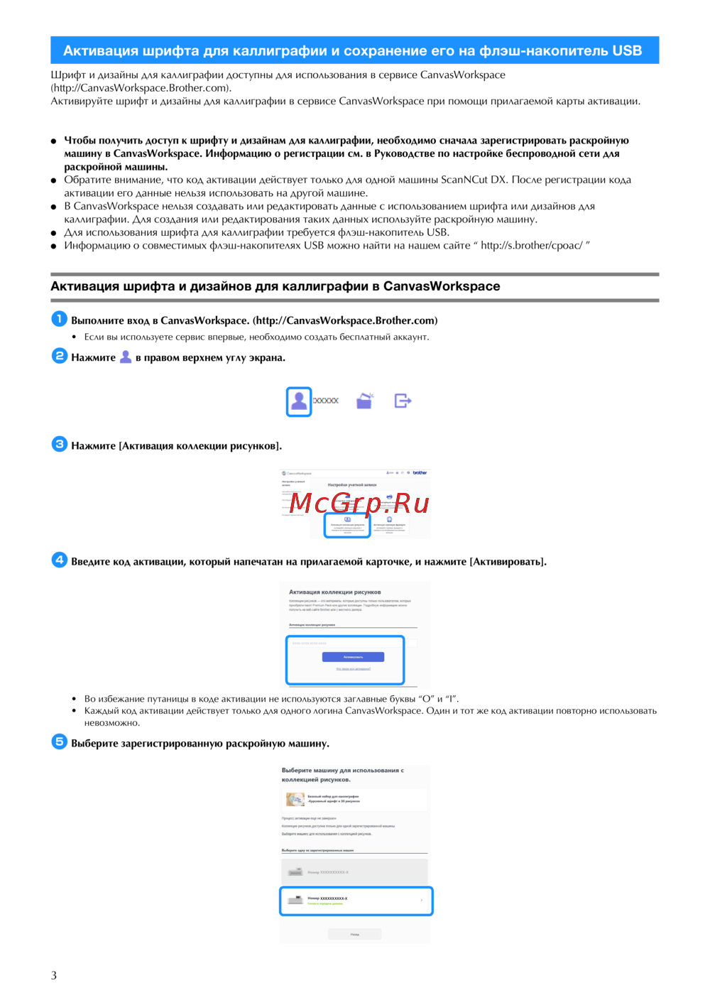● Обратите внимание, что код активации действует только для одной машины ScanNCut DX. После регистрации кода