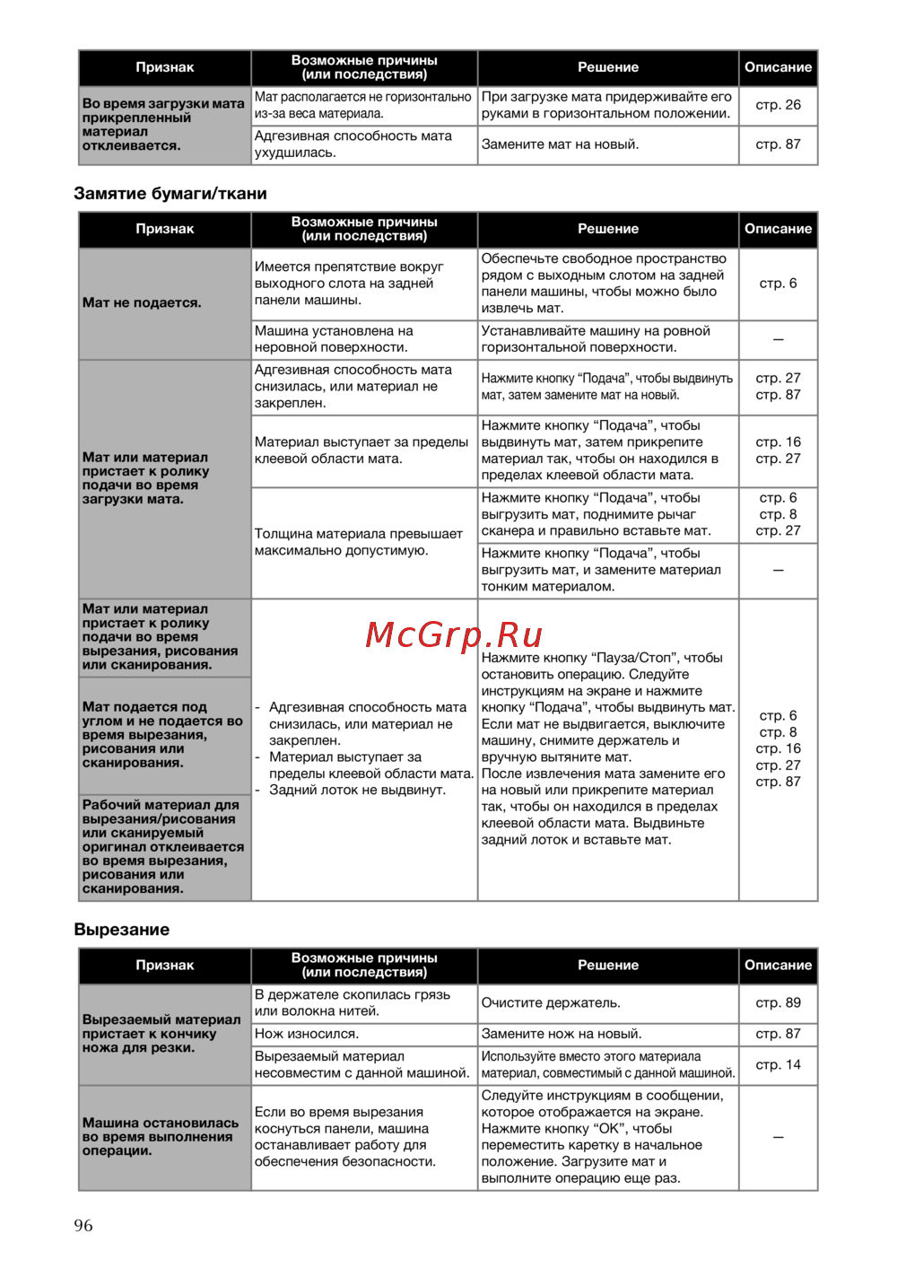 - В приведенной ниже таблице приведены некоторые сообщения об ошибках которые могут появляться во время работы машины а также способы устранения соответствующих ошибок в случае появления сообщения об ошибке выполните инструкции приведенные в сообщении или операции описанные в данной таблице если проблема не исчезла обратитесь в магазин в котором была куплена машина или в ближайший авторизованный сервисный центр p.111