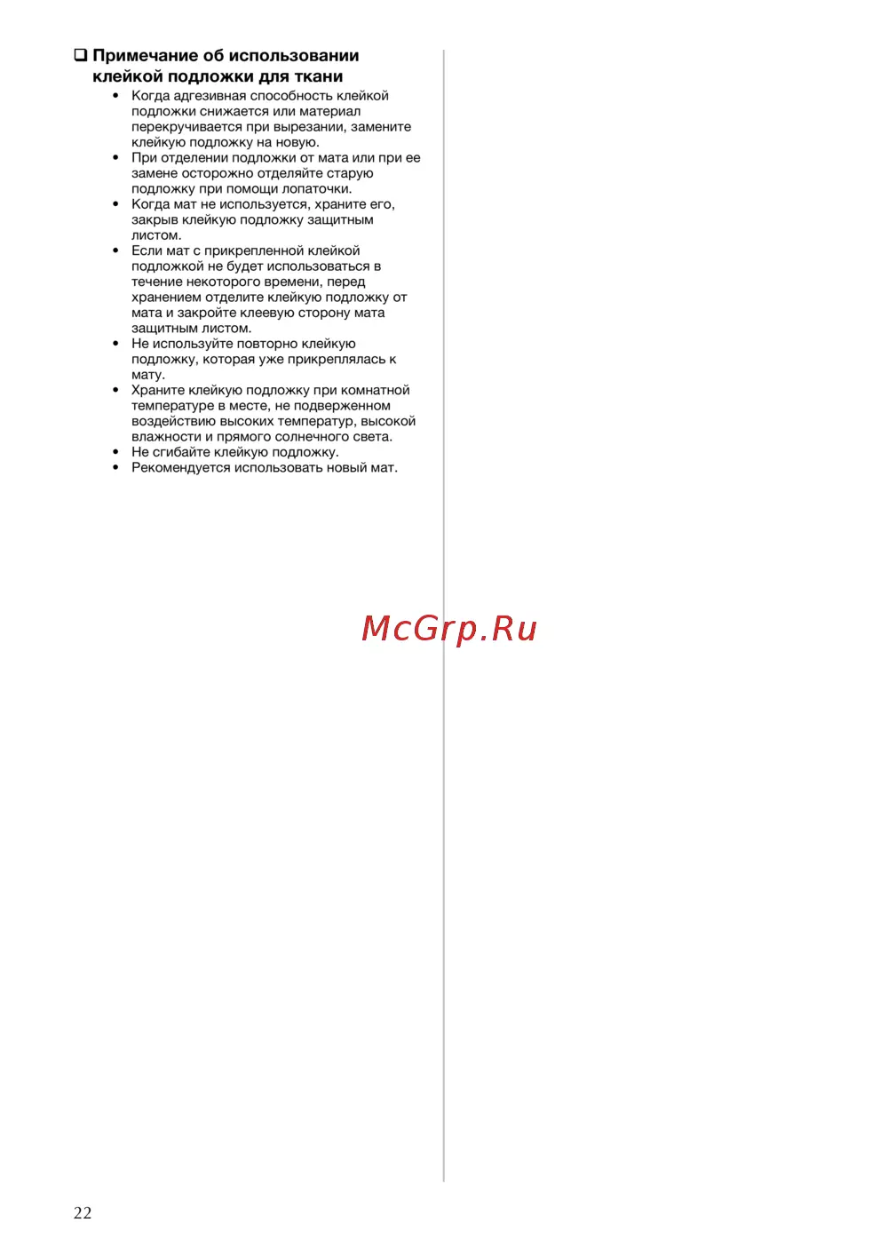 ![Brother ScanNCut SDX1200 [34/120] Примечание об использовании клейкой подложки для ткани](/views2/1897145/page34/bg22.png)