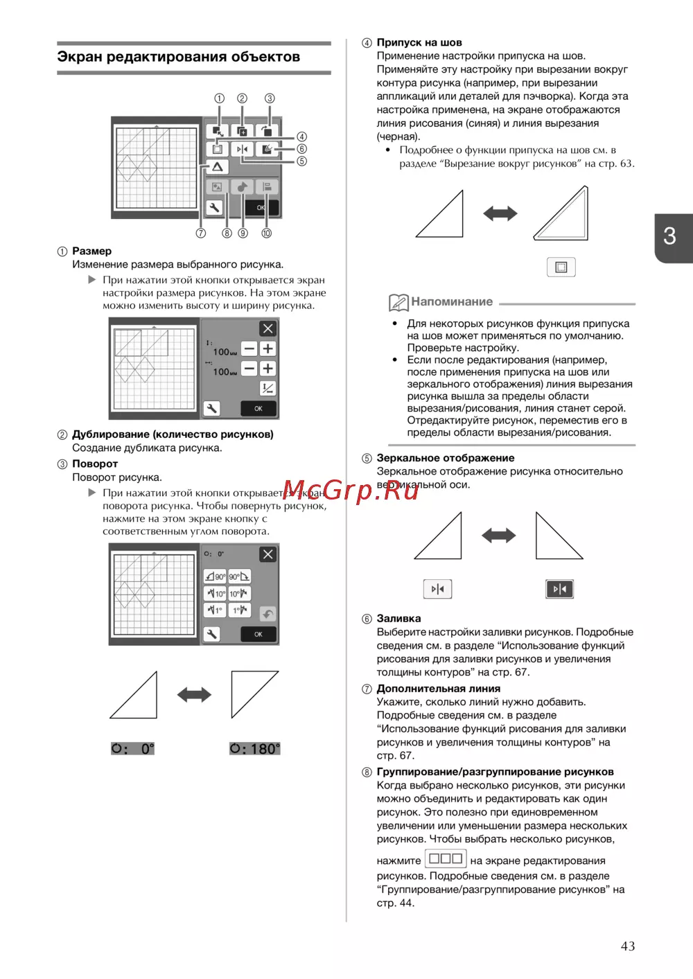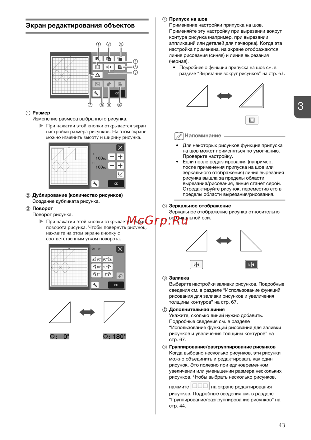 • Подробнее о функции припуска на шов см. в
