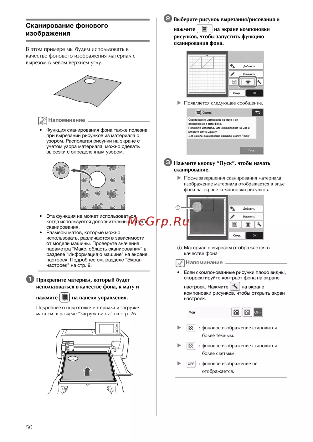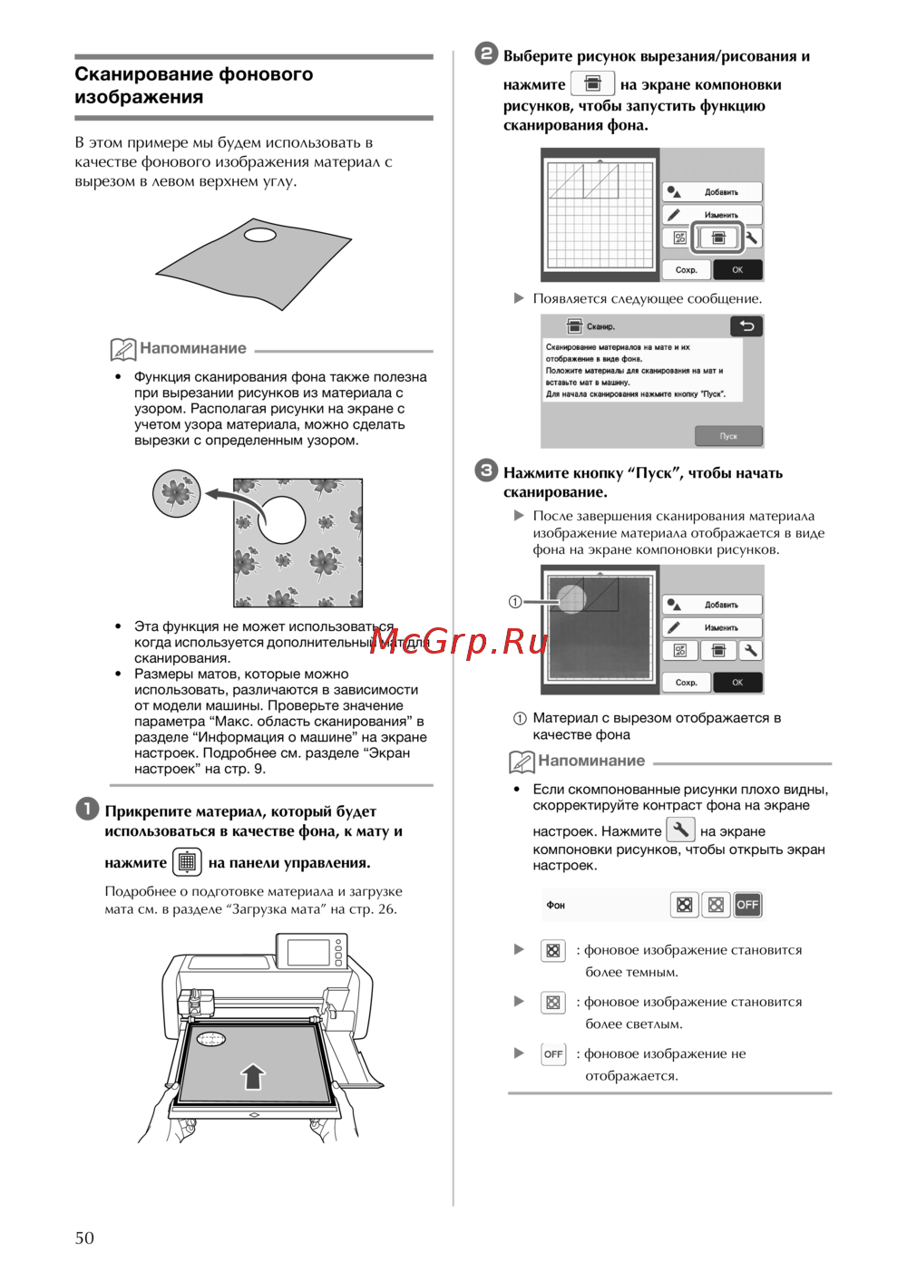 - В режиме вырезание можно автоматически отрегулировать положение вырезания если оно сместилось подробнее о режиме вырезание см в разделе сканирование для вырезания вырезание на стр 69 p.104