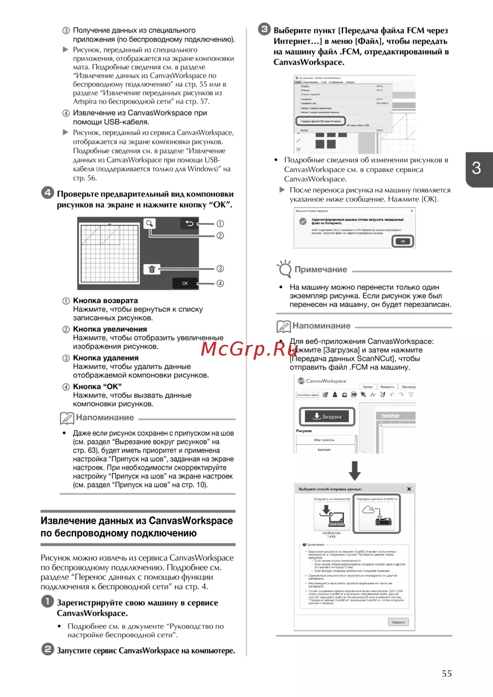Brother ScanNCut SDX1200 [67/120] Выберите пункт передача файла fcm через интернет в меню файл чтобы передать на машину файл fcm отредактированный в canvasworkspace