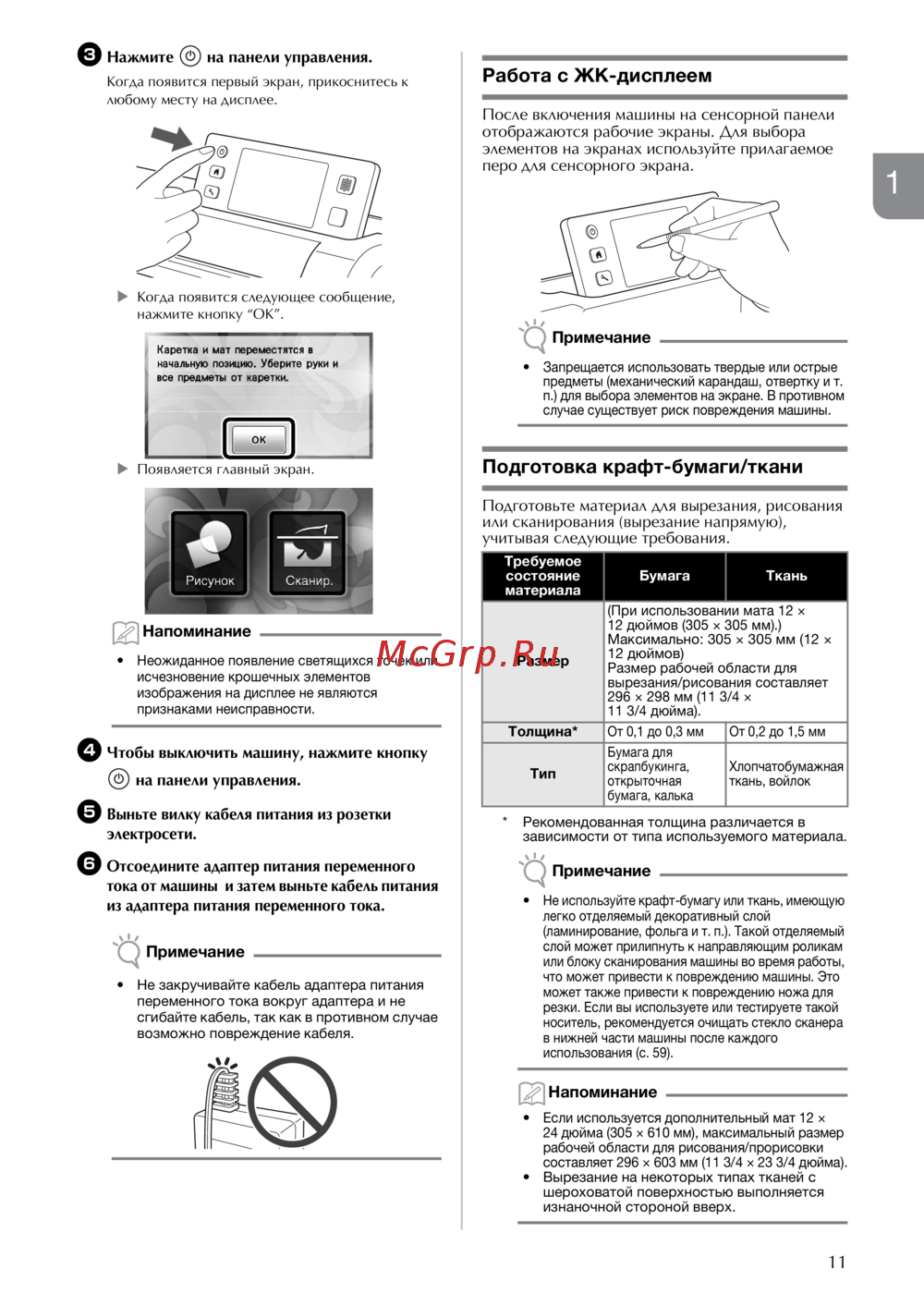 Brother ScanNCut CM300 — инструкция по использованию сенсорного экрана и материалов для работы [13/72]