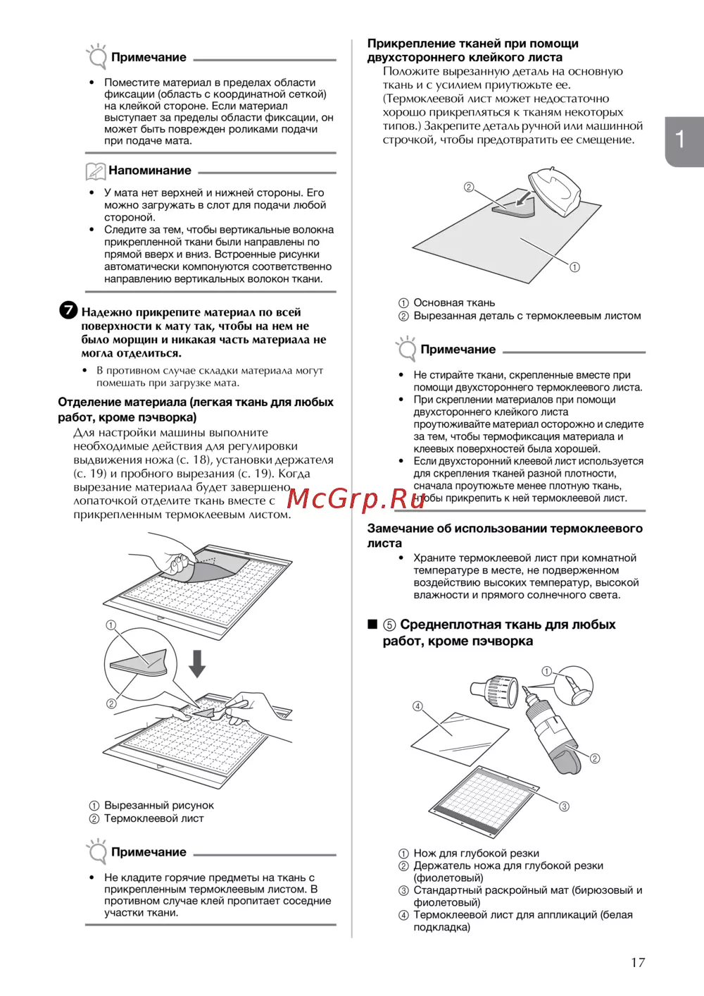 Brother ScanNCut CM300 — инструкции по работе с термоклеевыми листами и тканями [19/72]