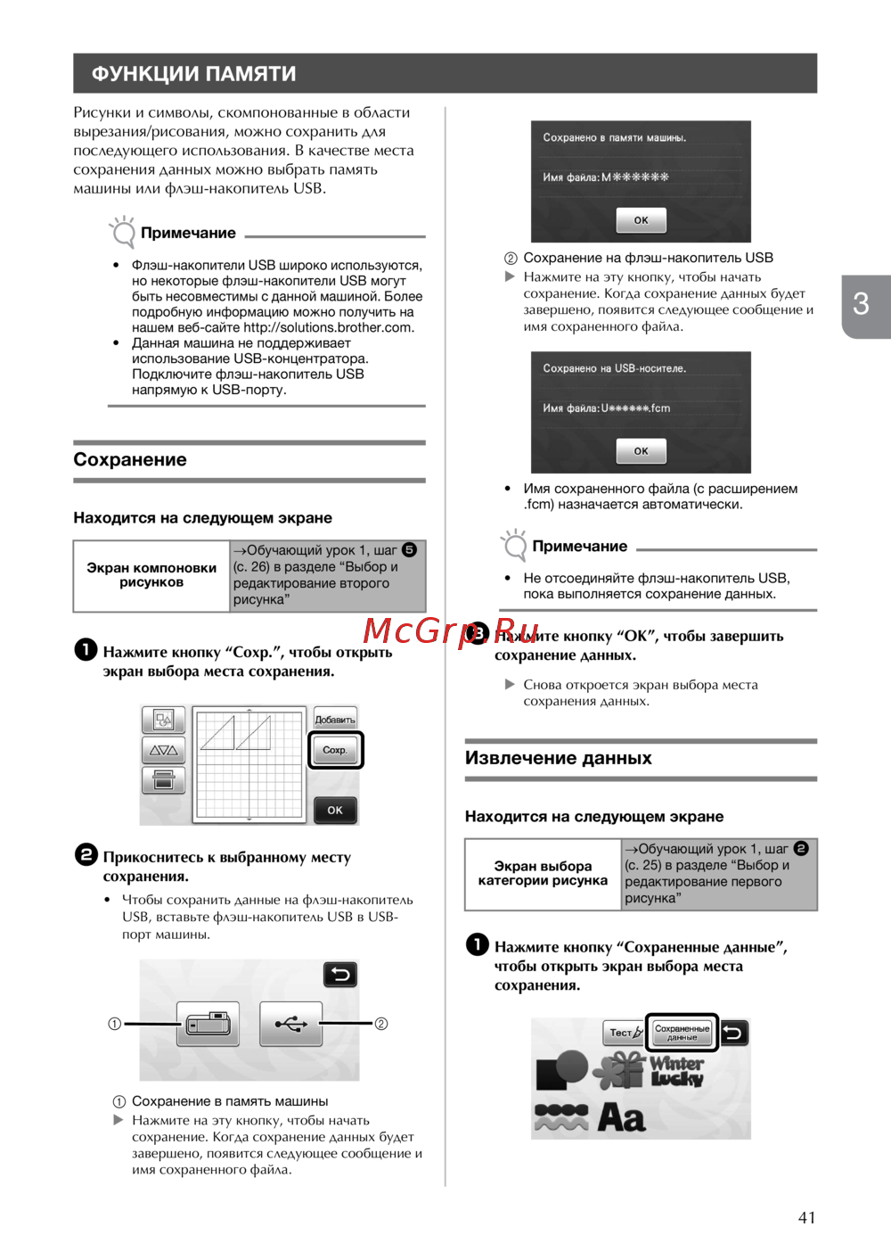 Brother ScanNCut CM300 — сохранение и извлечение данных на флэш-накопителе USB [43/72]