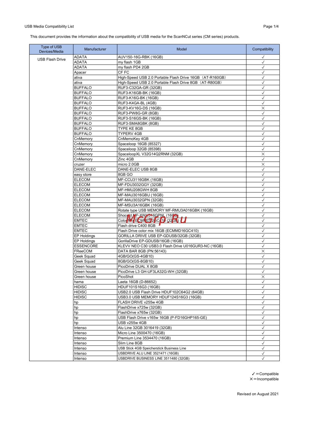 This document provides the information about the compatibility of USB media for the ScanNCut series (CM series) products.