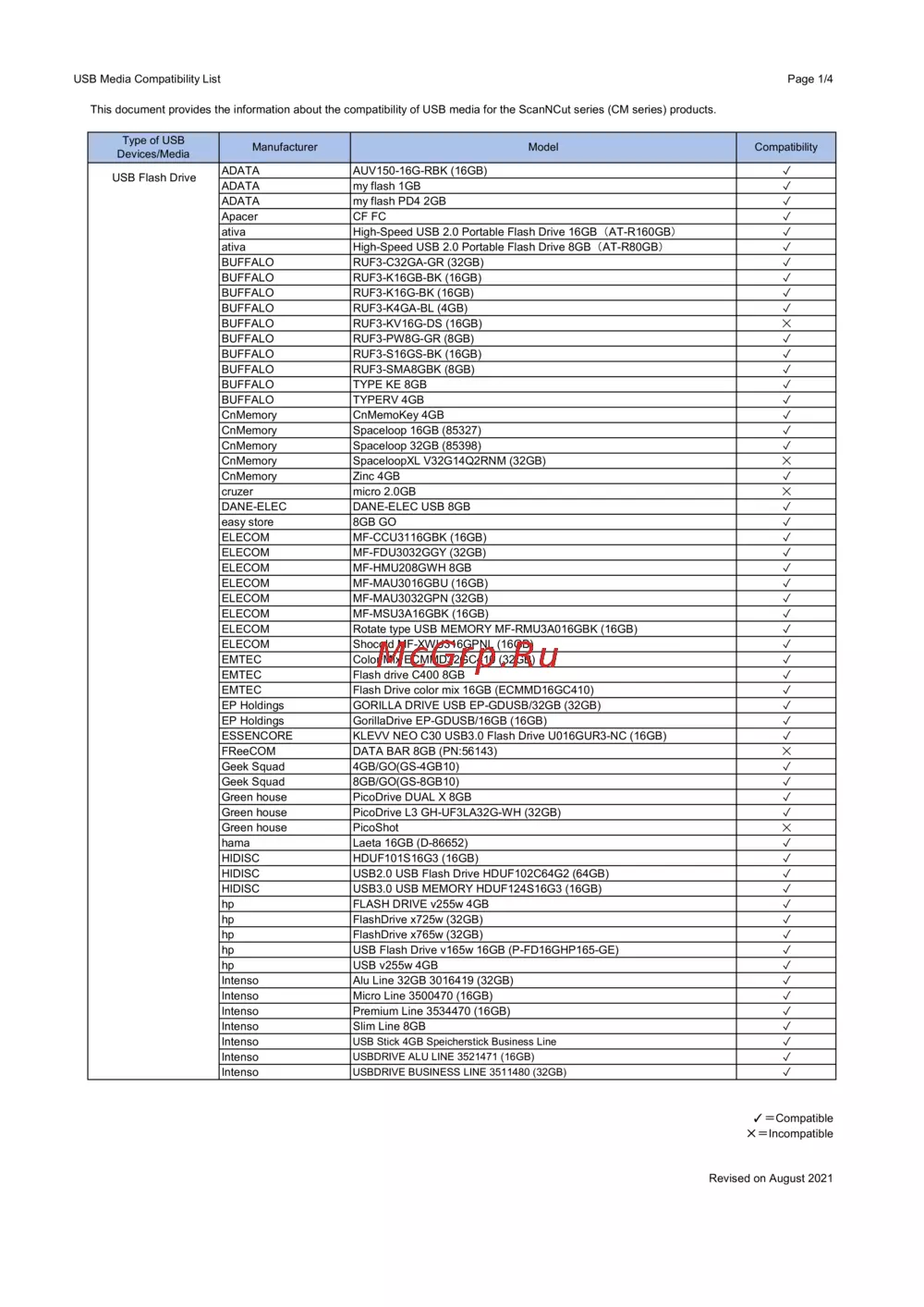 Brother ScanNCut CM300 Список совместимости USB_носителей онлайн