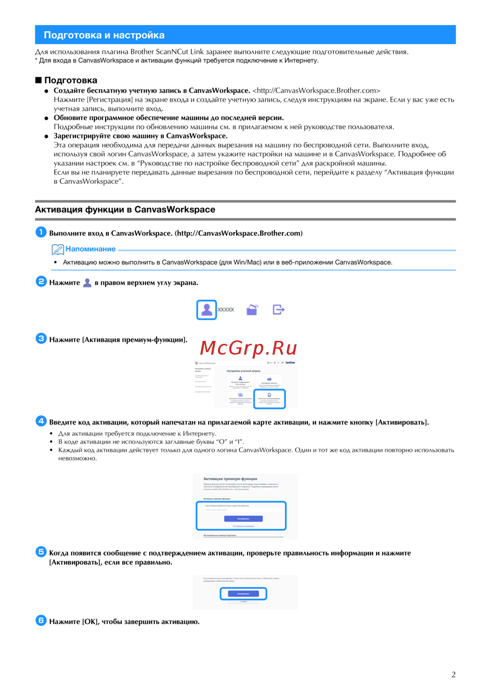 • Каждый код активации действует только для одного логина CanvasWorkspace. Один и тот же код активации повторно использовать